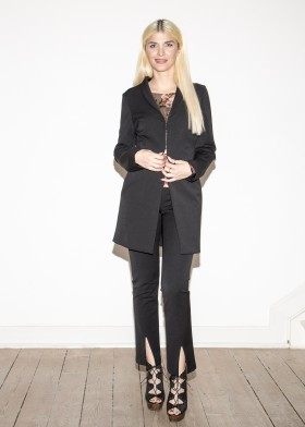 This black long blazer is an indispensable long-term investment! It impresses with its simple elegance. The high-quality, heavy stretch fabric ensures high wearing comfort and a hint of nonchalance. The classic, puristic cut is rounded off by a cut stand-up collar. The long blazer can be closed with a tick. Whether in everyday life, in the office or at the next cocktail party, the long blazer can be used for almost any occasion and can therefore be combined in many different ways. Style it classically for a day in the office with a white blouse and pencil skirt. For a lunch date, choose our black lacquer print shirt and our slit suit pants. Or combine the long blazer with one of our numerous dresses for the next cocktail party. After a short time, the long blazer will be an indispensable part of your wardrobe.