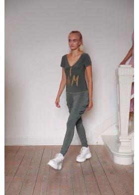 This hand-painted shirt, made from the finest crepe jersey, is adorned with a mantra that begins with "I AM" on the front and continues with an intention on the back. You can also choose your own mantra. Each colour has a matching mantra. A mantra is a phrase with spiritual power and a strong intention. It can influence the body and mind as well as the soul and can be used when people want to strengthen their well-being. The colour burgundy stands for the root chakra. The mantra "I AM ABUNDANCE" is artfully handwritten on the burgundy jersey with gold paint. The label's signature gold lurex edging adorns the hem of the shirt. The short-sleeved shirt has a V-neck and a figure-hugging cut. It is also available with a round neck and different sleeve lengths - half, ¾ and long.