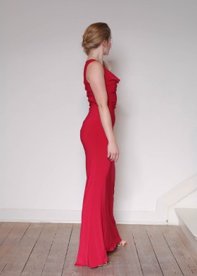 Short A-dress with waterfall neckline in red crêpe jersey