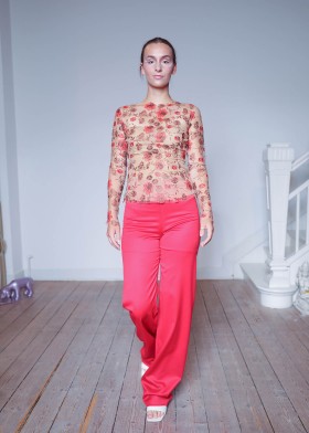 Minimalist elegance - that's the best way to describe these casually cut trousers with welt pockets. A timeless basic that you won't be able to do without. The bright colour makes these trousers a real eye-catcher. The low waist and wide cuff with press studs make the trousers very comfortable. The trousers sit on the upper hip. The high-quality, Italian wool stretch fabric also ensures comfort. The trousers are half lined with stretch satin. Complete your outfit with our Chocolate Flower lace shirt. Whether in the office, on a lunch date or cocktail evening the trousers are always a good choice and look great with both high and flat shoes. The trousers are washable and suitable for travelling.