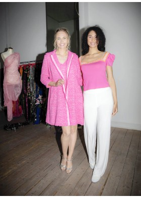 Part of our limited edition range, this A-line coat with Spade collar is a stunning creation in bright pink tweed. The high quality fabric brings a touch of luxury. The spade collar, ¾ sleeves and colour contrasting fringe ensure this bright pink coat will attract admiring glances for this unique statement piece. The versatility of this coat will take you from every day wear paired with our matching border shirt and ivory Pure Pants or our Rocco shirt in doubled stretch tulle and white skirt with floral lace to more festive occasions when worn with our matching tweed dress in bright pink.