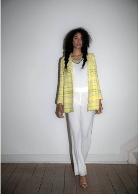 The appliqués on the neckline and sleeves are a special detail. The border is made up of multicolored stripes that create a harmonious overall look in combination with the aubergine-colored jersey. The appliqué is made from 100% organic cotton and was manufactured in Germany. The high-quality jersey is extremely comfortable to wear and is also very easy to care for. The shirt is rounded off with the label's signature gold lurex edging at the hem. Whether for the office, festive events or in your free time - this shirt can be worn for numerous occasions. Style it elegantly with our high-waisted skirt made from Italian multicolor gold Lurex tweed and our tweed jacket in brown tones. Combine it casually with our Pure Jersey Pants or our Waterfall Pants for everyday wear.