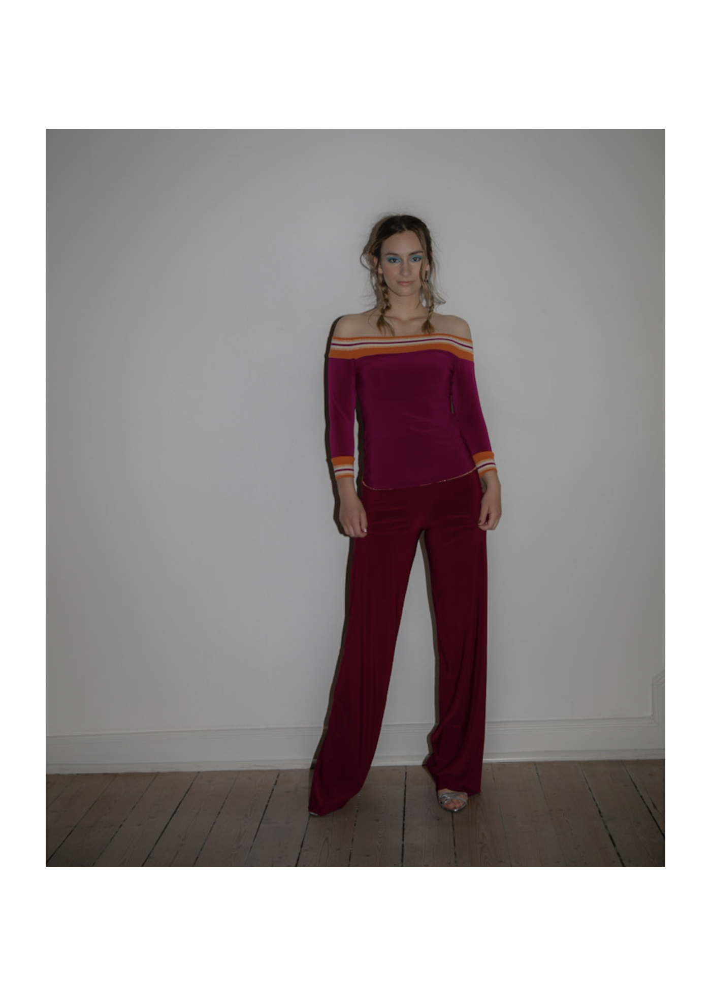 The classic cut of these loose leg jersey trousers in bordeaux harmonises particularly well with our I AM-Shirt. Alternatively, wear the trousers with one of our classy, embroidered lace shirts or one of our turtleneck shirts. With their simple, elegant style, the pants go with countless tops and are very comfortable to wear thanks to the stretch jersey fabric. The jersey pants are also perfect for a day at the home office. Suitable for suitcases and travel.