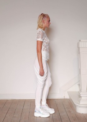 The Waterfall halterneck top combines sophistication with comfort. The high-quality crepe jersey ensures maximum comfort. The vibrant purple colour makes the otherwise simple top a real eye-catcher. The press stud fastening at the neck makes it easy to put on and take off and also ensures a perfect fit. The design is rounded off with the label's signature lurex edging in shimmering silver. Thanks to the easy-care material, the top is suitable for travelling and suitcases. Wear the Waterfall halterneck top in everyday life with our matching Waterfall trousers in violet. For an evening event, choose our purple, purist A-line skirt.