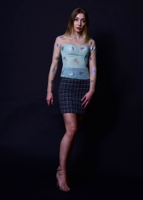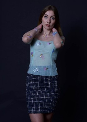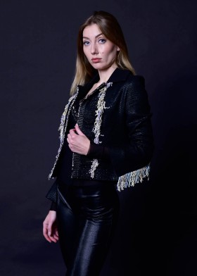 Create an elegant outfit with our tulle lace shirt with jellyfish embroidery in ivory and our matching tweed skirt with a high waist. For everyday wear, choose one of our tulle stretch shirts and our dark blue jeans to go with the tweed coat. For a day at the office, you can style the coat with a pencil skirt and a blouse. Or wear it to your next evening event with a little black dress to add a casual touch to your outfit. Whether you want to wear the coat for formal occasions or everyday wear, it will always add a sophisticated touch to your outfit.