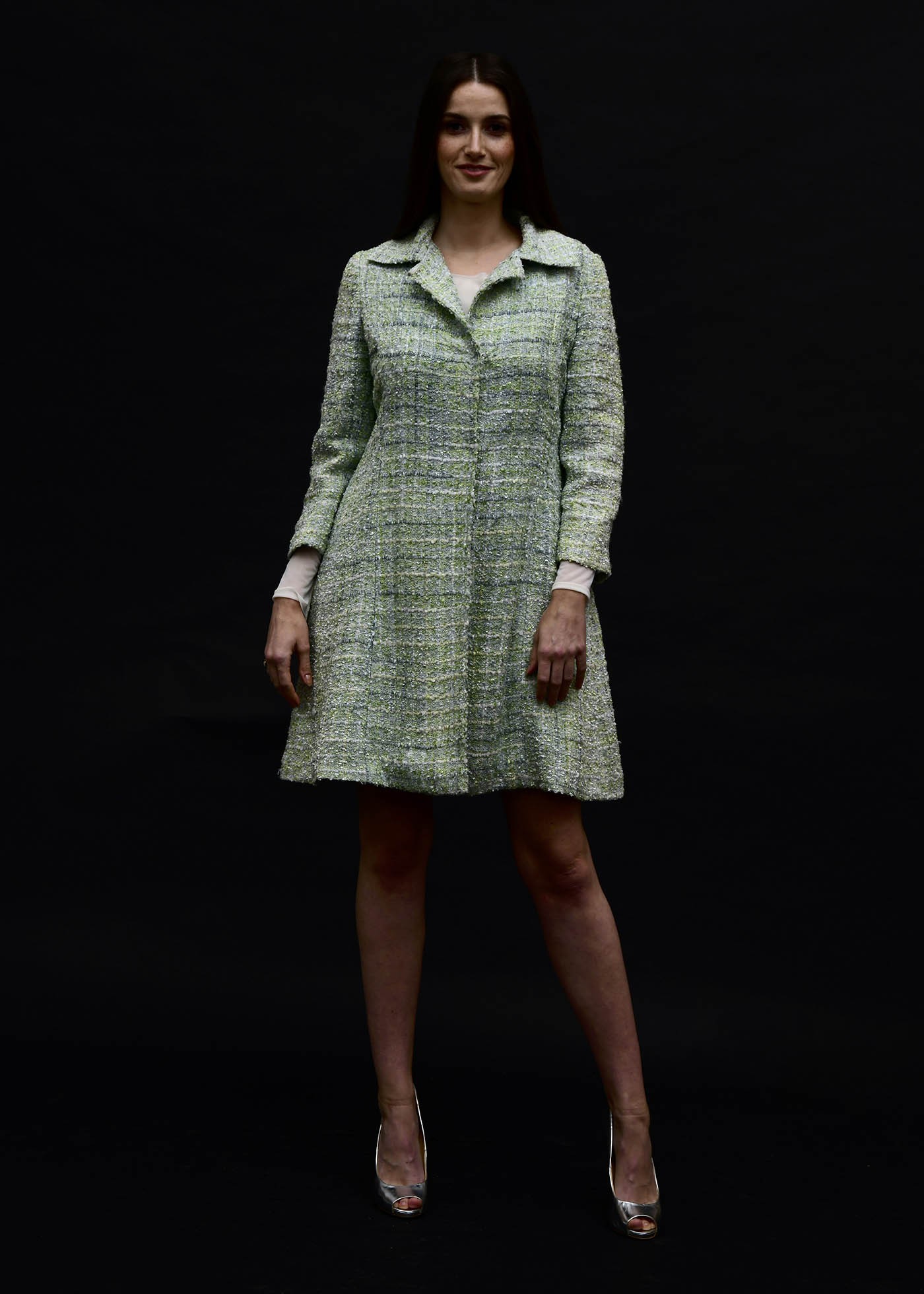 A-line coat made of soft bouclé tweed in delicate melange shades of green